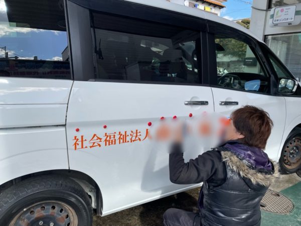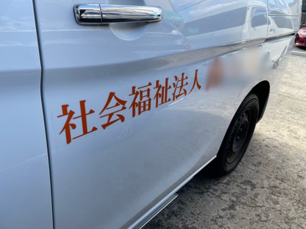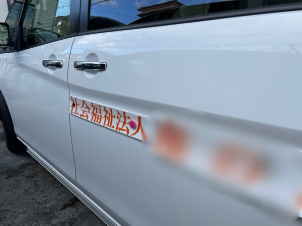 この車両の側面に施設名を貼らせて頂きます。