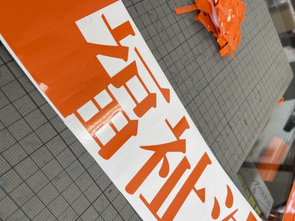 カッティングマシンでカッティングシートに施設名をカットしたら、